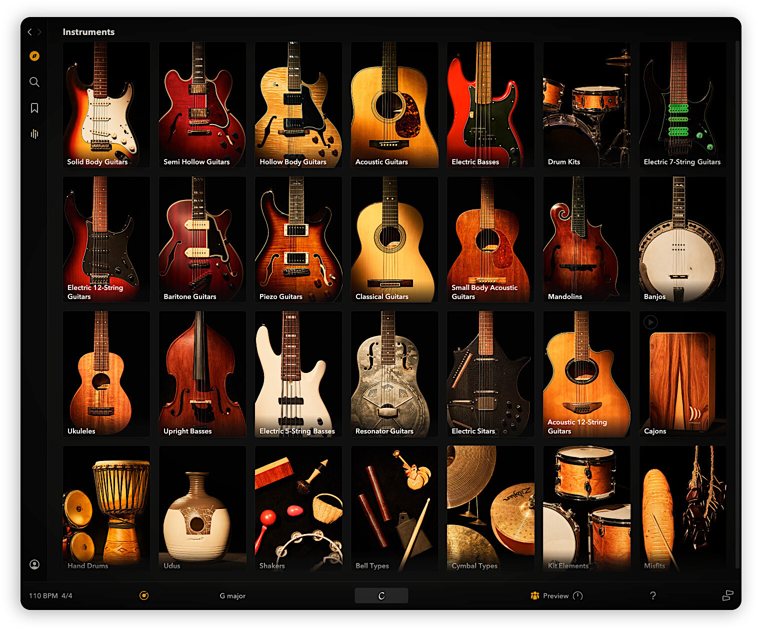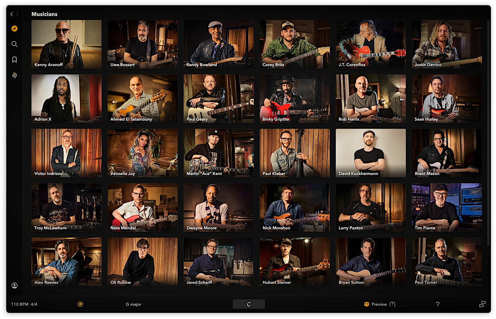 30 多位世界顶级录音室乐手,在全球最负盛名的录音室——各音乐流派的核心圣地——录制的演奏,构成了素材来源:乡村传奇 Brent Mason、JT Corenflos 与 Bryan Sutton;摇滚与流行专家 Tim Pierce、Justin Derrico、Kenny Aronoff 和 Uwe Bossert;灵魂与 R&B 巨匠 Binky Griptite、Nick Movshon、Randy Bowland 与 Venzella Joy;以及放克高手 Rob Harris 与 Paul Turner。Foo Fighters 贝斯手 Nate Mendel、Skunk Anansie 吉他手 Martin “Ace” Kent 等顶尖乐队成员亦赫然在列,还有一众王牌乐手。他们皆是各自领域的专家,手握多项格莱美奖及金银唱片。更有好消息:音色库将持续扩充!
