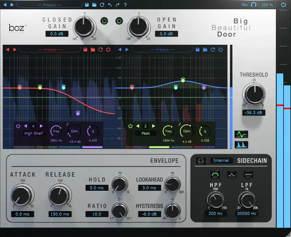 不仅可以精确流畅地调整音量,还能精细控制阈值上下的音色平衡。从精准的噪声门限到智能自动均衡;从无缝的鼓组串音消除到令人惊叹的频率塑形;Big Beautiful Door 不仅仅是门限处理——它释放了无限的创造潜力。门限处理的未来已经到来,等待您去掌握。