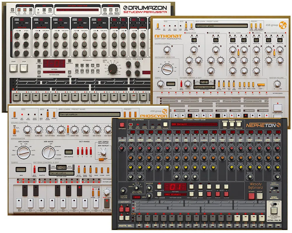 Drumazon - 模拟著名的 909 鼓机。所有乐器都以与原始设备完全相同的方式进行合成。原始设备的所有细微差别和细节都被完美捕捉。此外,所有 Drumazon 乐器都配备了增强的控制功能。这种额外的功能使用户能够比原始设备更进一步地调整声音。阅读更多请点击这里 。