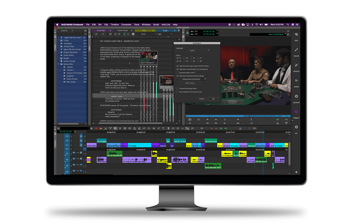 有了新的文件箱容器和映射,你就能以任何方式组织和分组内容。利用 PhraseFind 和 ScriptSync 选项,根据片段和镜头所包含的对白,在几秒钟内就能找到素材。