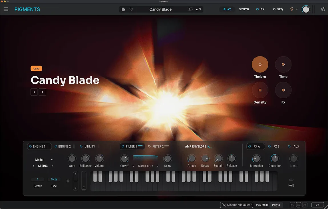 Pigments 站在现代音色设计的前沿,体现了支撑全球最大胆音乐的创新美学——从磷光音色到雷鸣般的低音,再到广阔的粒子声场。
