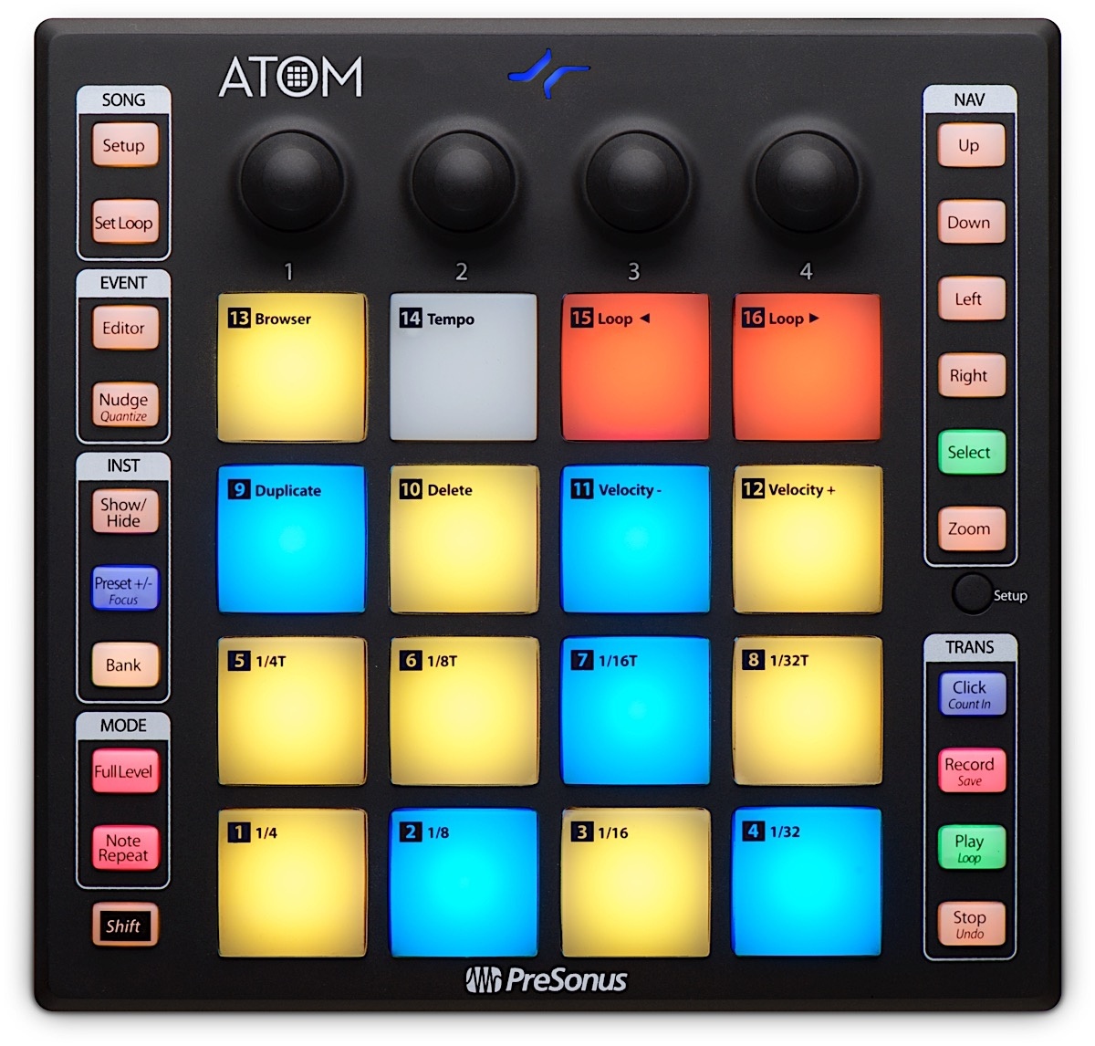 - 16 个全尺寸速度敏感、压力敏感的 RGB LED 打击垫