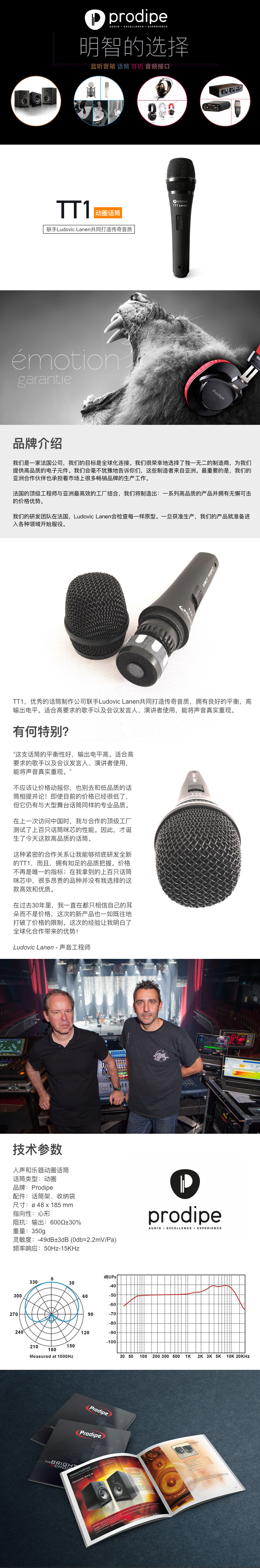 结果显而易见:PRODIPE麦克风系列结合了严格的标准、温暖、精确和可靠。至于新的TT1,它具有良好的平衡性和高输出,是寻求准确再现其声音的任何人的理想选择:歌手、扬声器、主持人。"